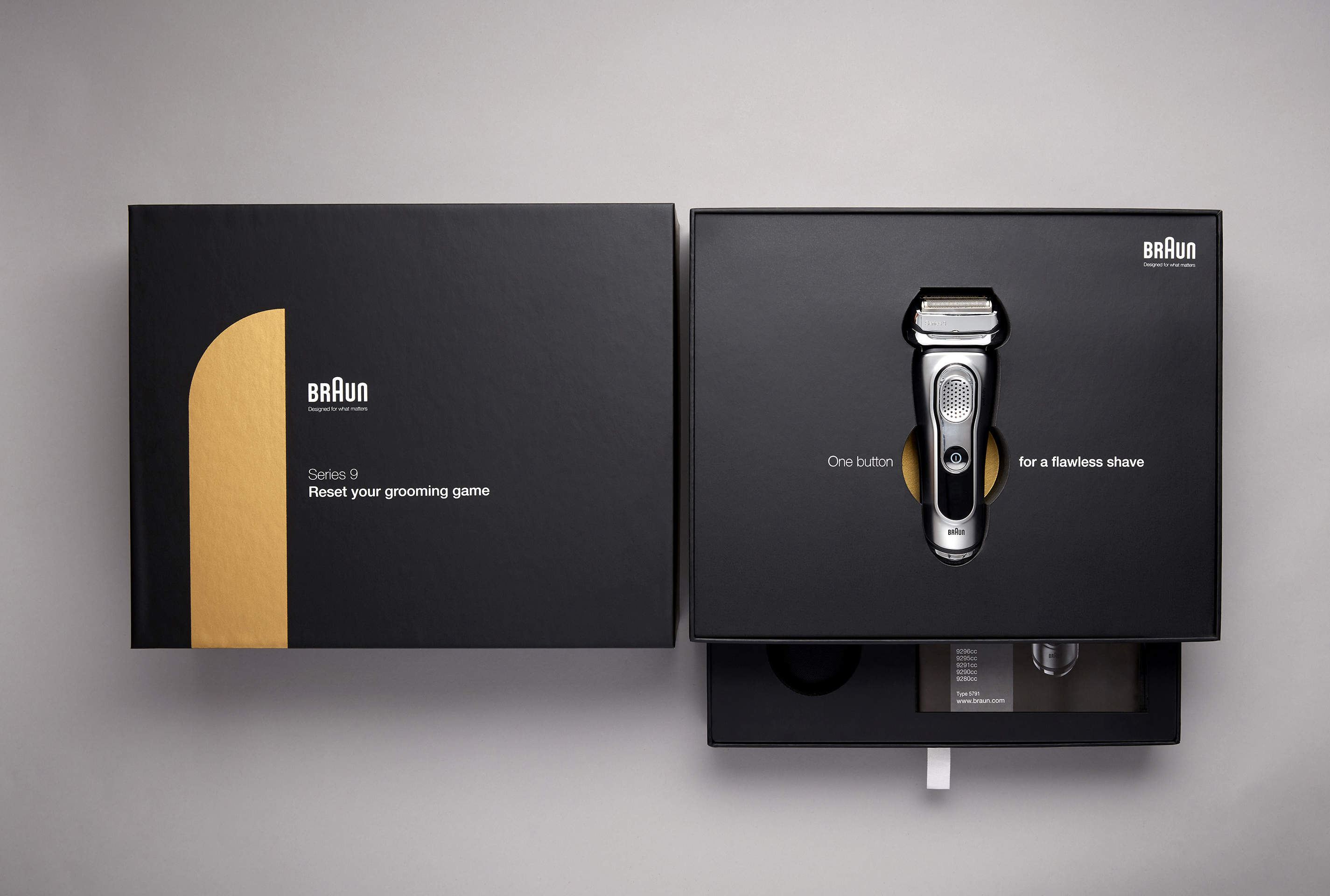 An exciting opportunity to get tactile in the design and print production for this special edition packaging design for the international media launch of the Braun Series 9.